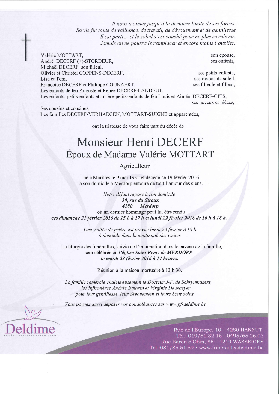Died in Merdorp (4280) on 19 February 2016 at the age of 84 years