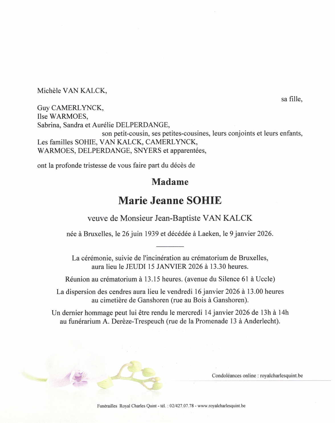 Veuve de Monsieur Jean-Baptiste VAN KALCK