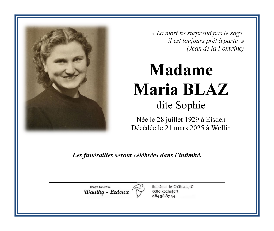 Madame Maria dite Sophie BLAZ