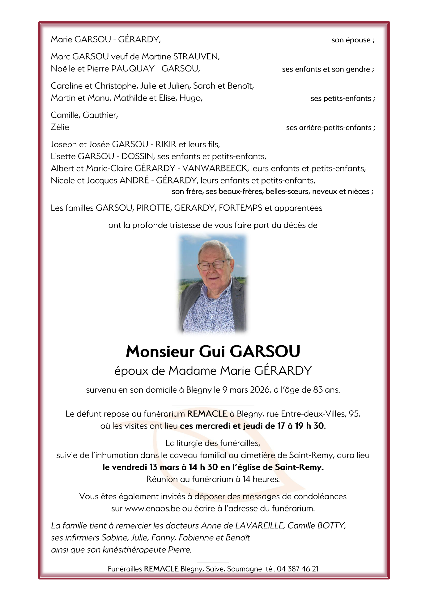 Décédé à Blegny (4670) le lundi 9 mars 2026 à l'âge de 83 ans