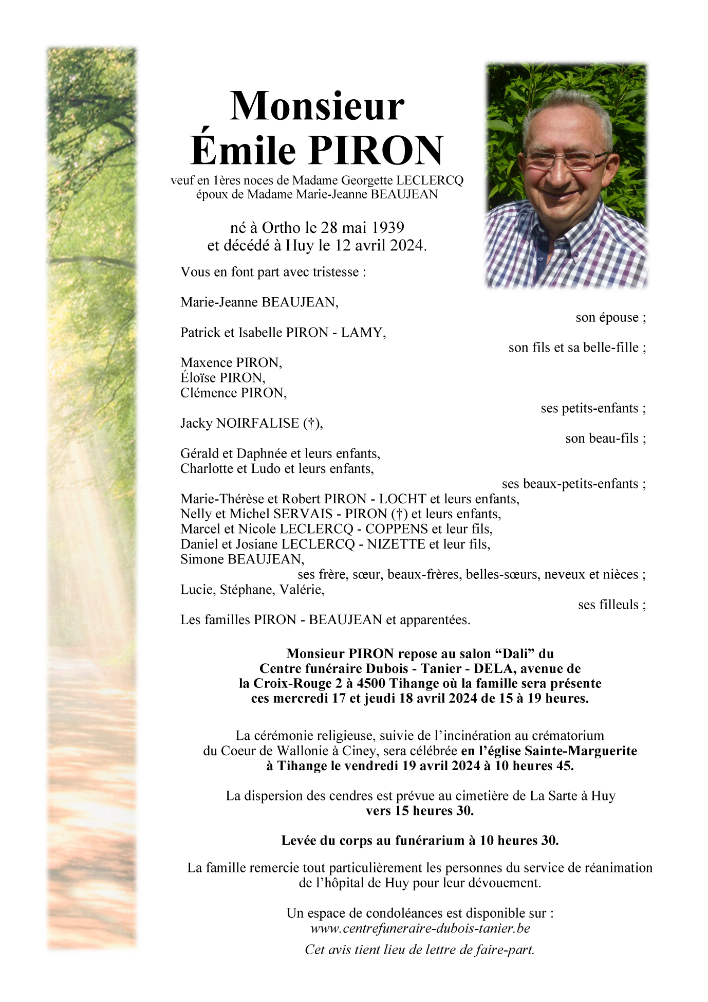 Died in Huy (4500) on 12 April 2024 at the age of 84 years