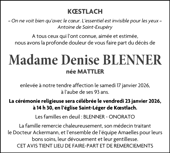 Décédée à Koestlach (68480, France) le samedi 17 janvier 2026 à l'âge de 92 ans