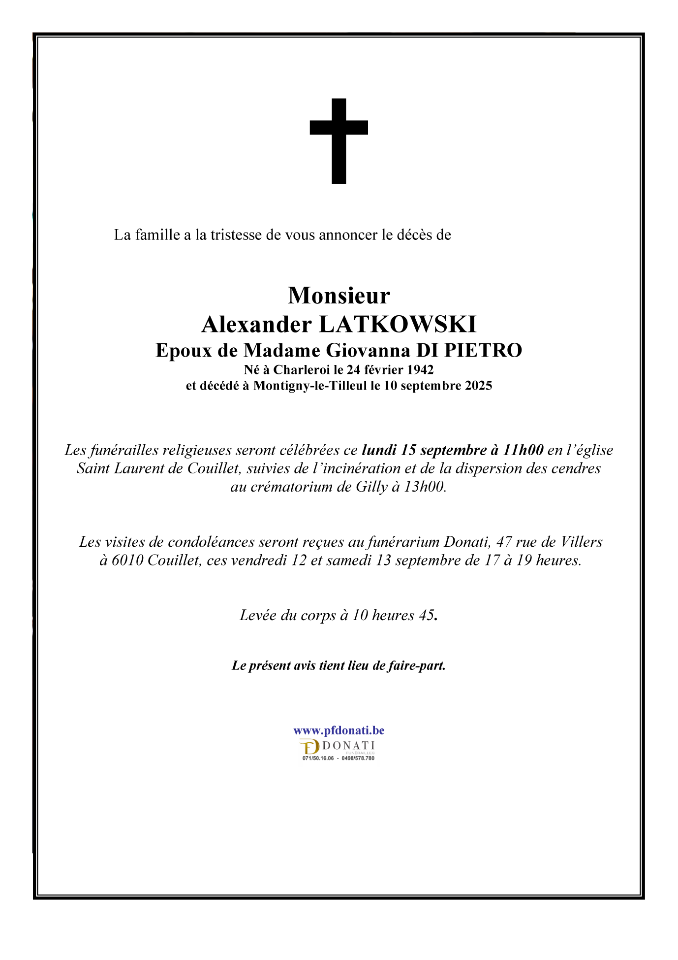 Overleden te Montigny-le-Tilleul (6110) op woensdag 10 september 2025 op 83-jarige leeftijd
