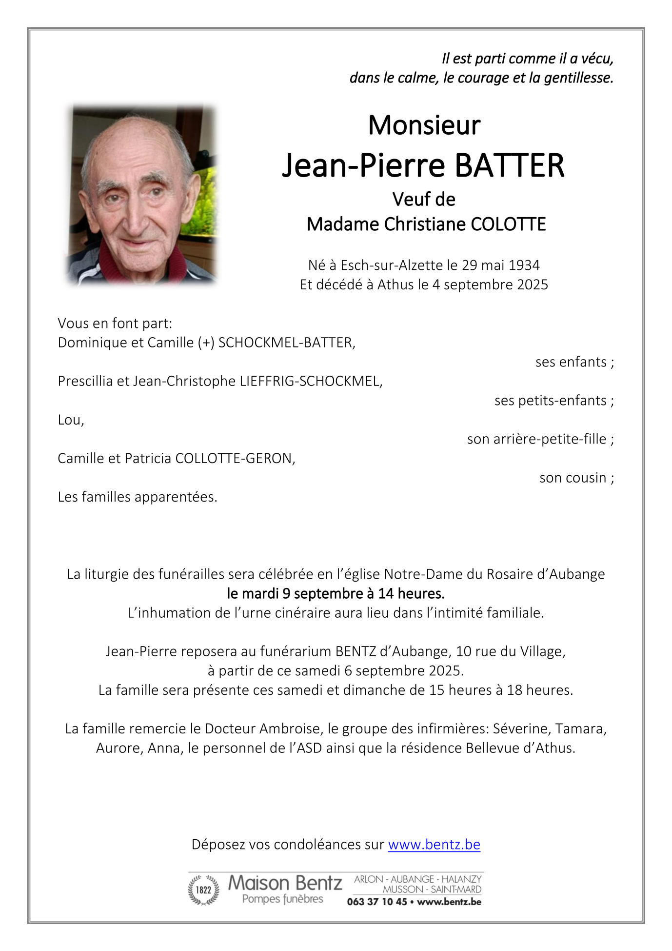 Overleden te Athus (6791) op donderdag 4 september 2025 op 91-jarige leeftijd