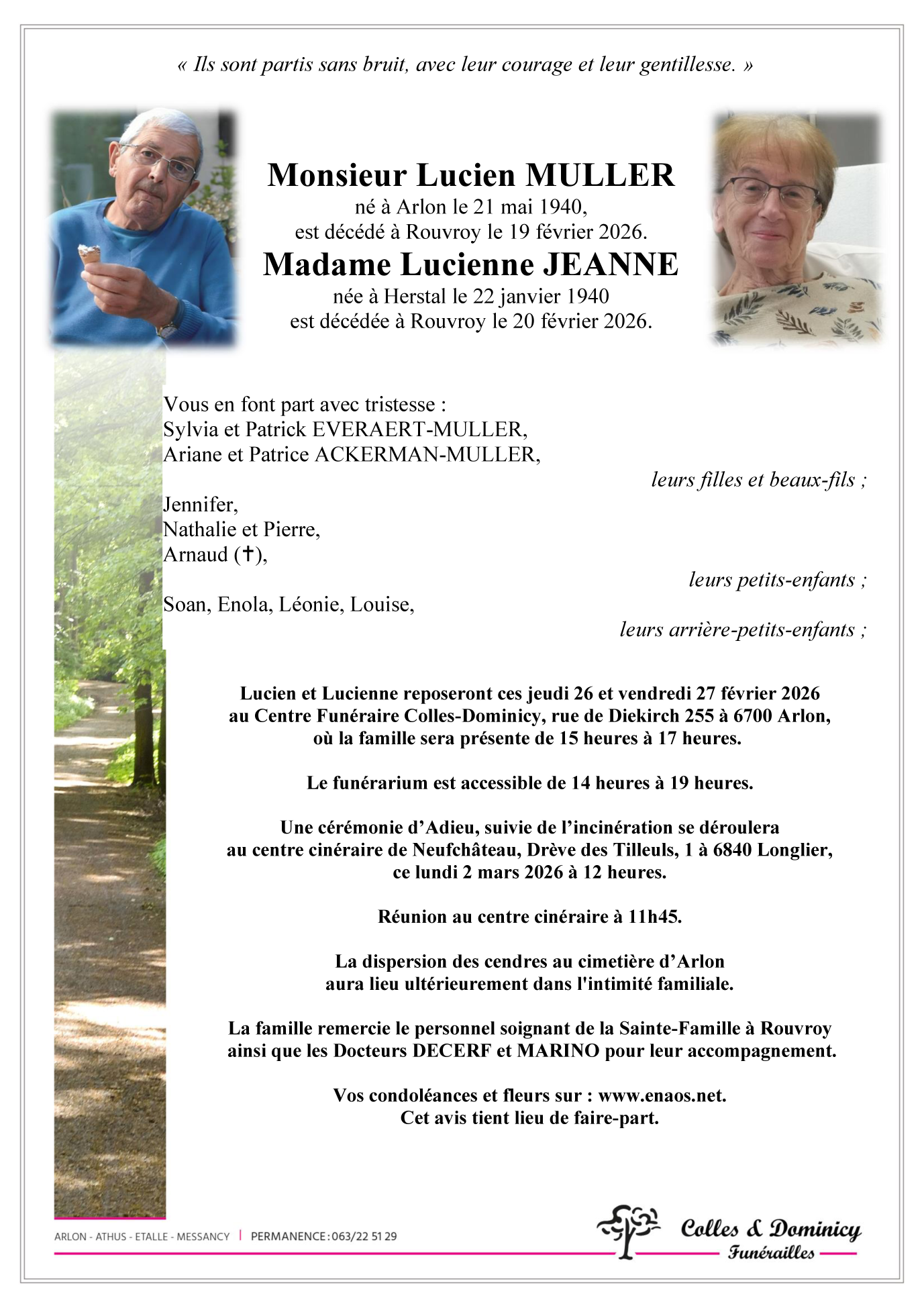 Décédé à Rouvroy (6767) le jeudi 19 février 2026 à l'âge de 85 ans