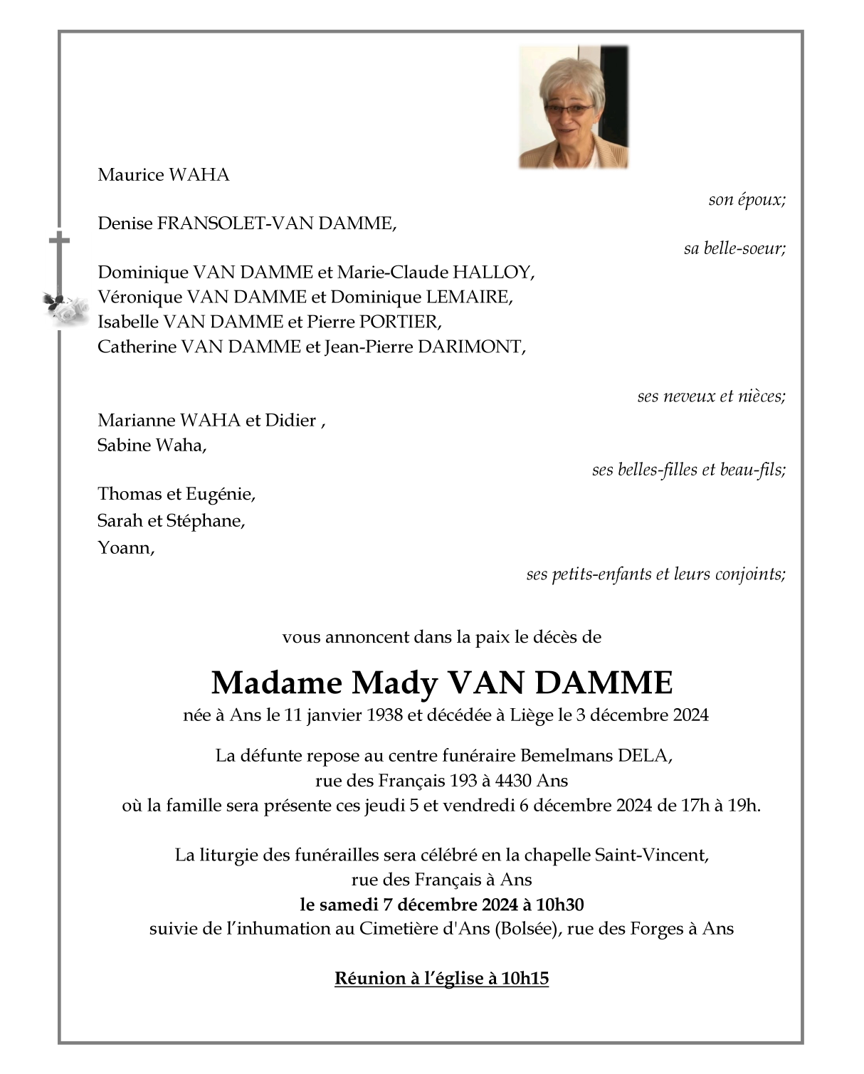 Décédée à Liège (4000) le mardi 3 décembre 2024 à l'âge de 86 ans
