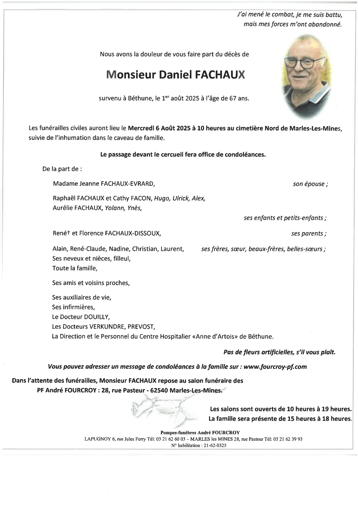 Décédé à Béthune (62400, France) le vendredi 1 août 2025 à l'âge de 67 ans