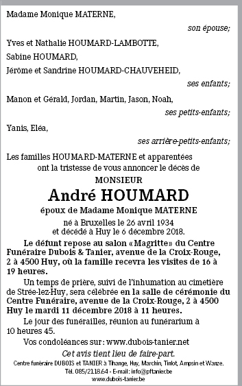 Fallecido en Huy (4500) el jueves, 6 de diciembre de 2018 a la edad de 84 años