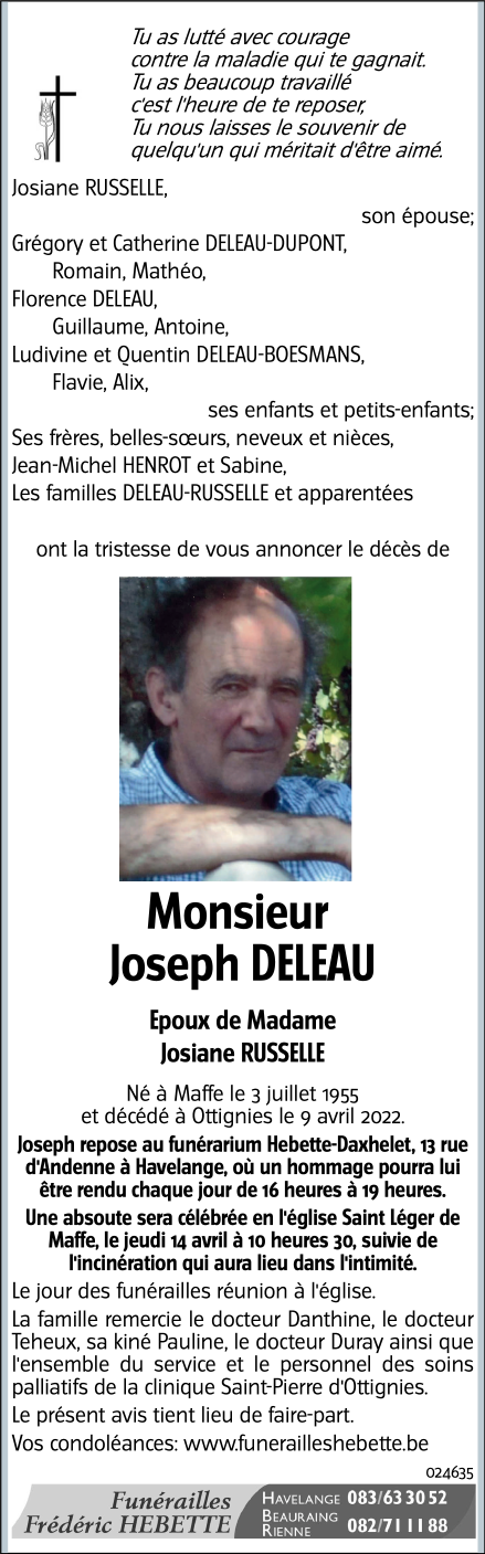 Décédé à Ottignies (1340) le samedi 9 avril 2022 à l'âge de 66 ans