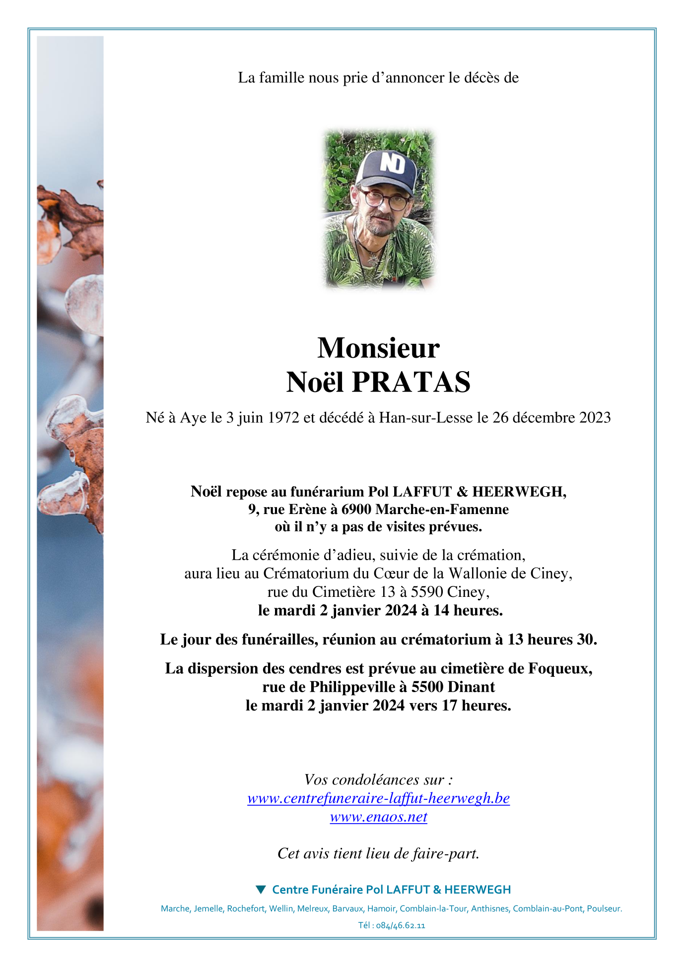 Died in Han-sur-Lesse (5580) on 26 December 2023 at the age of 51 years