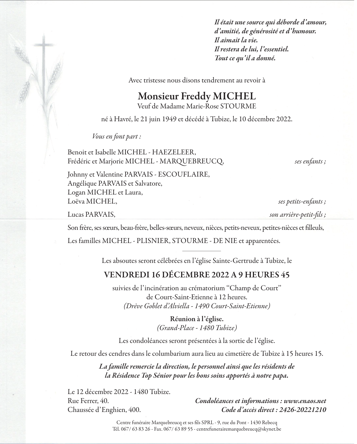 Overleden te Tubize (1480) op zaterdag 10 december 2022 op 73-jarige leeftijd