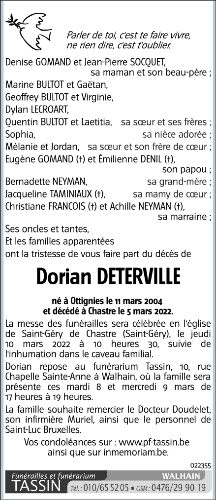 Overleden te Chastre (1450) op zaterdag 5 maart 2022 op 17-jarige leeftijd