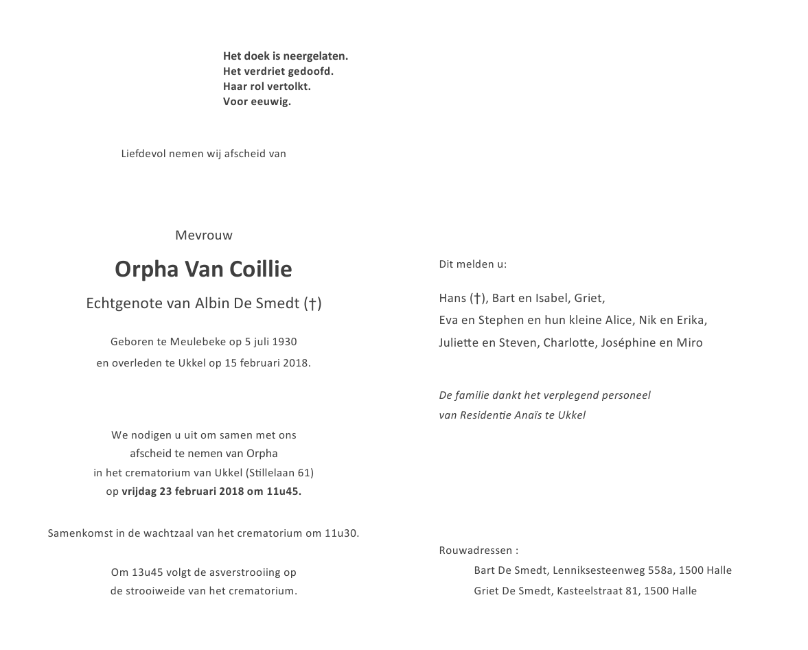 Overleden te Brussel (Ukkel) (1180) op donderdag 15 februari 2018 op 87-jarige leeftijd