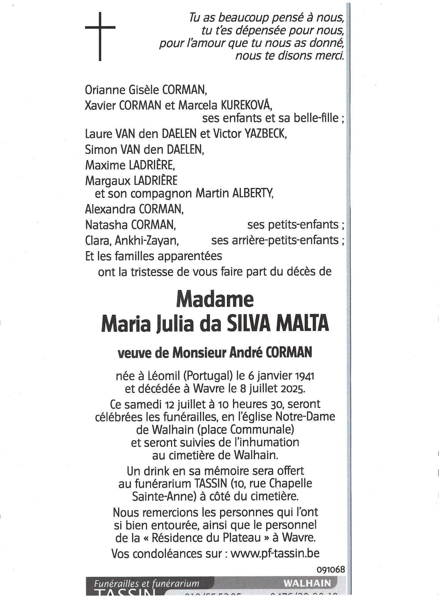 Madame Maria Julia CORMAN geboren da SILVA MALTA