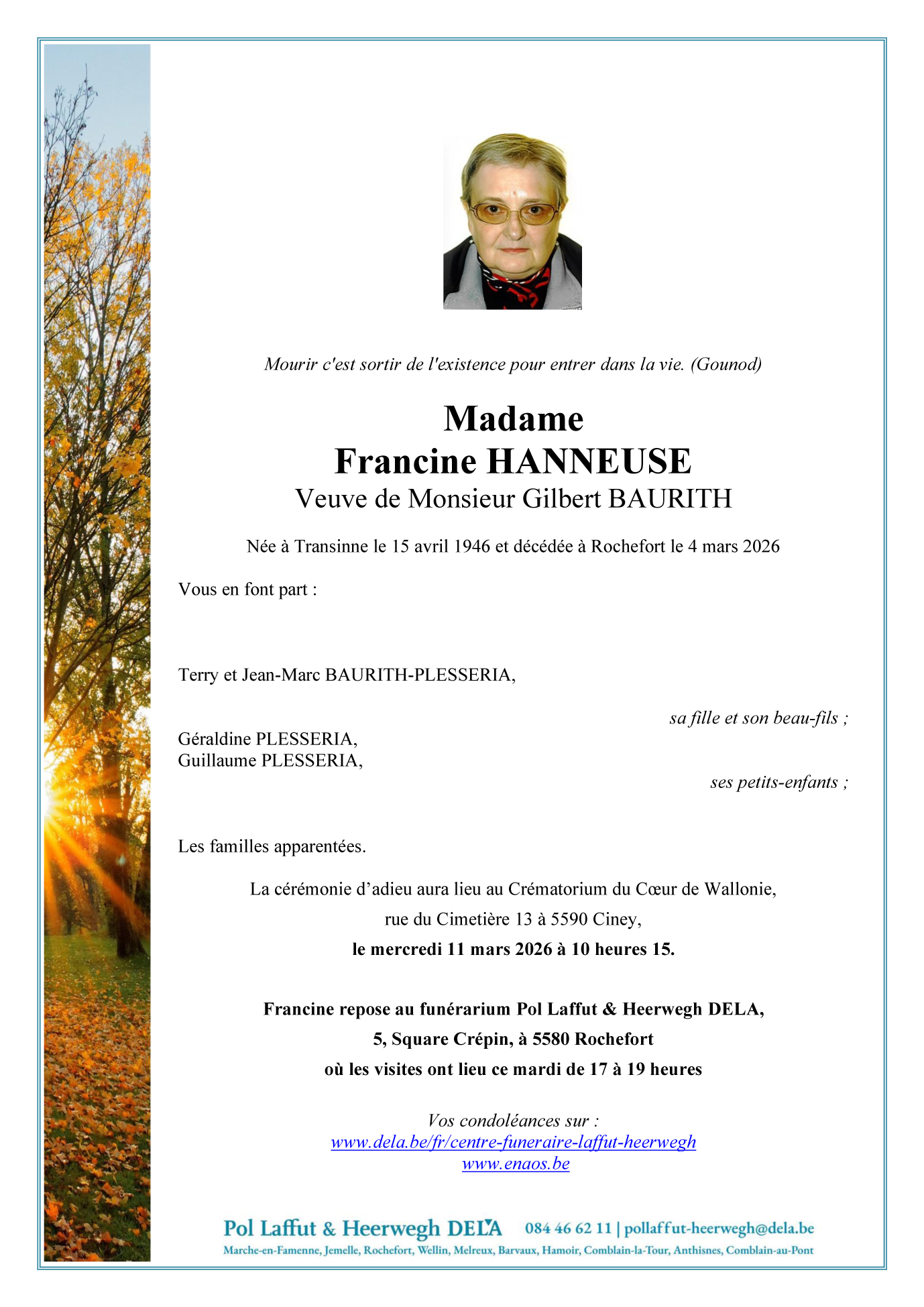 Overleden te Rochefort (5580) op woensdag 4 maart 2026 op 79-jarige leeftijd