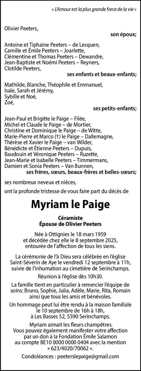 Epouse de Monsieur Olivier Peeters