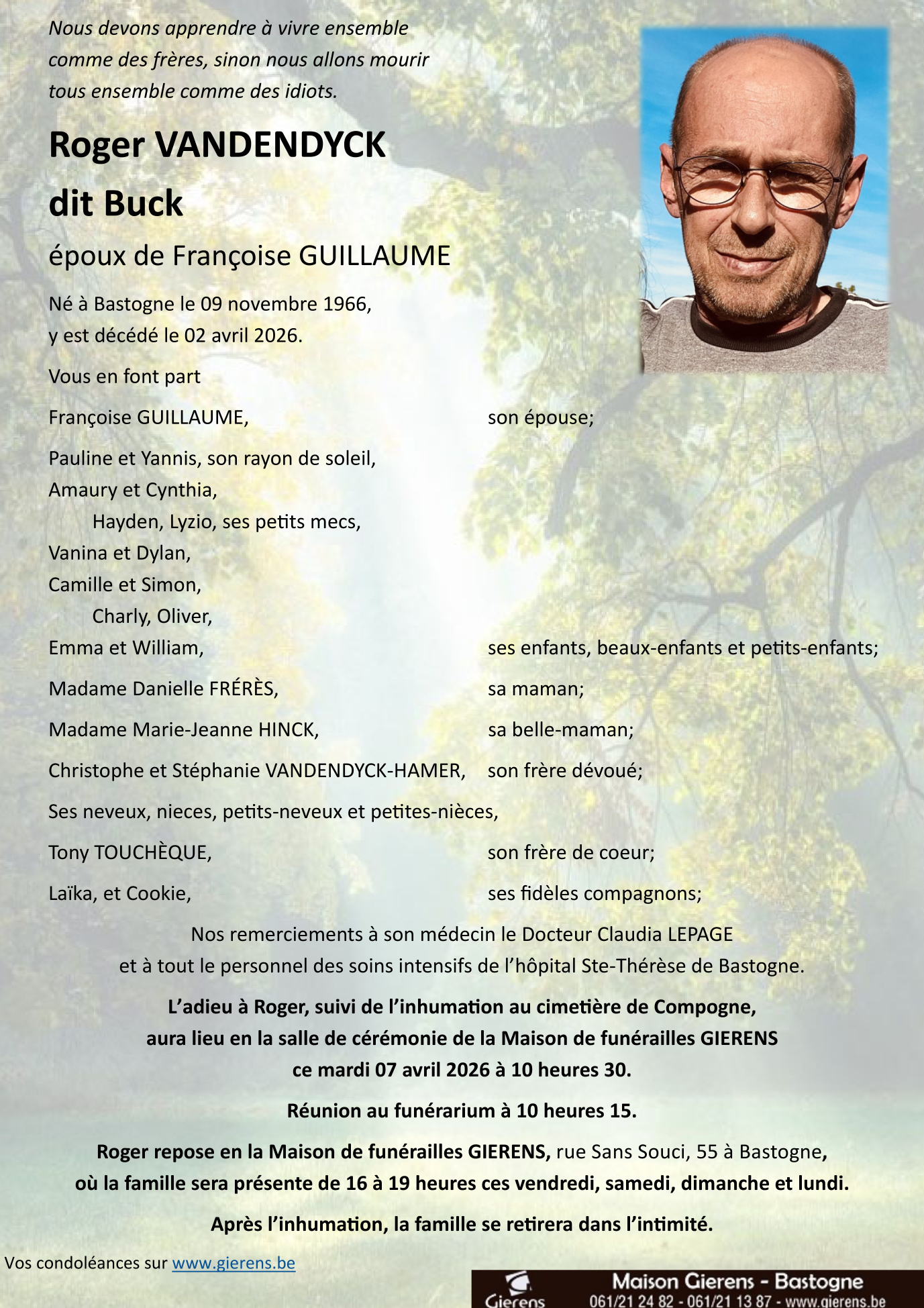 Décédé à Bastogne (6600) le jeudi 2 avril 2026 à l'âge de 59 ans