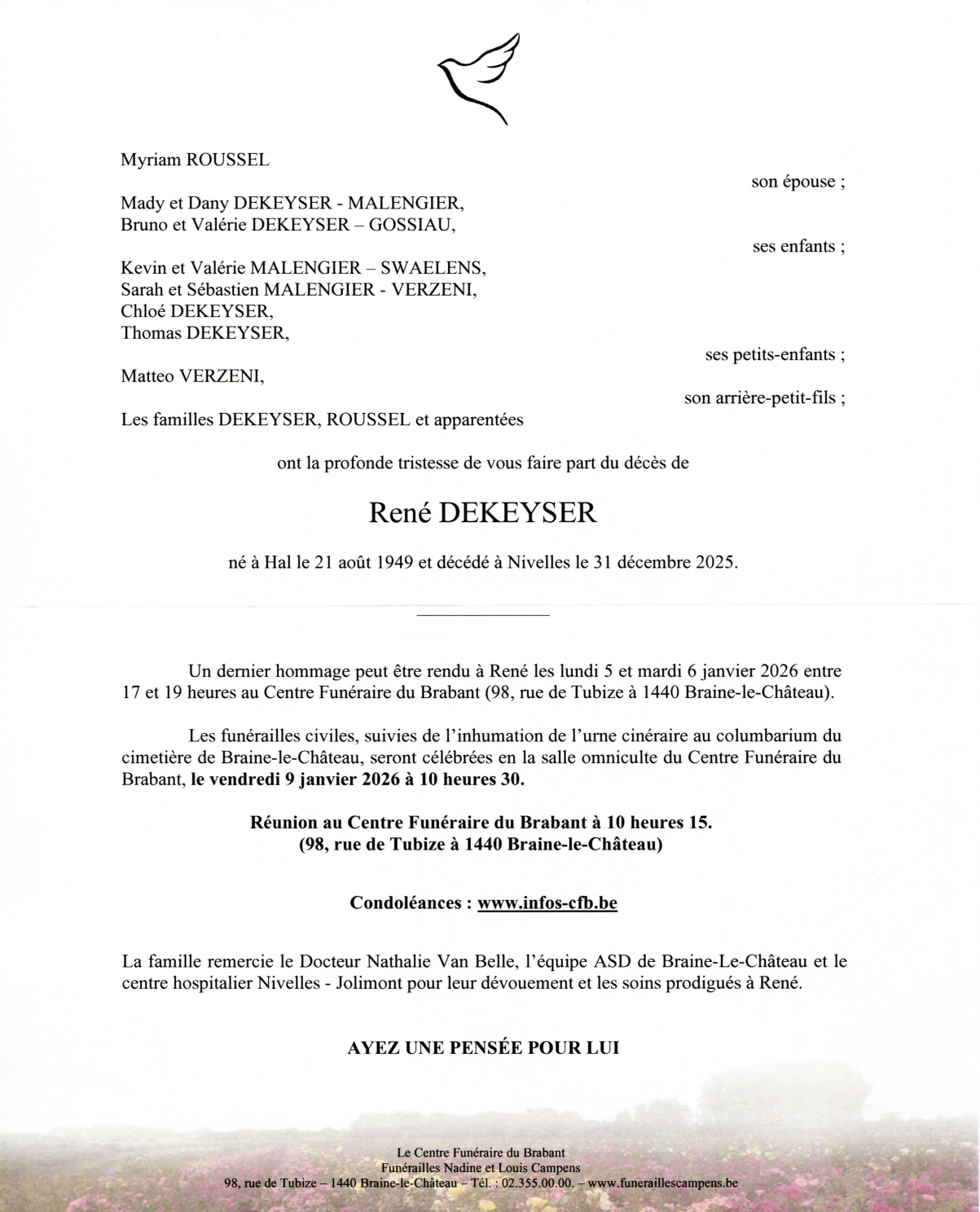Décédé à Nivelles (1400) le mercredi 31 décembre 2025 à l'âge de 76 ans
