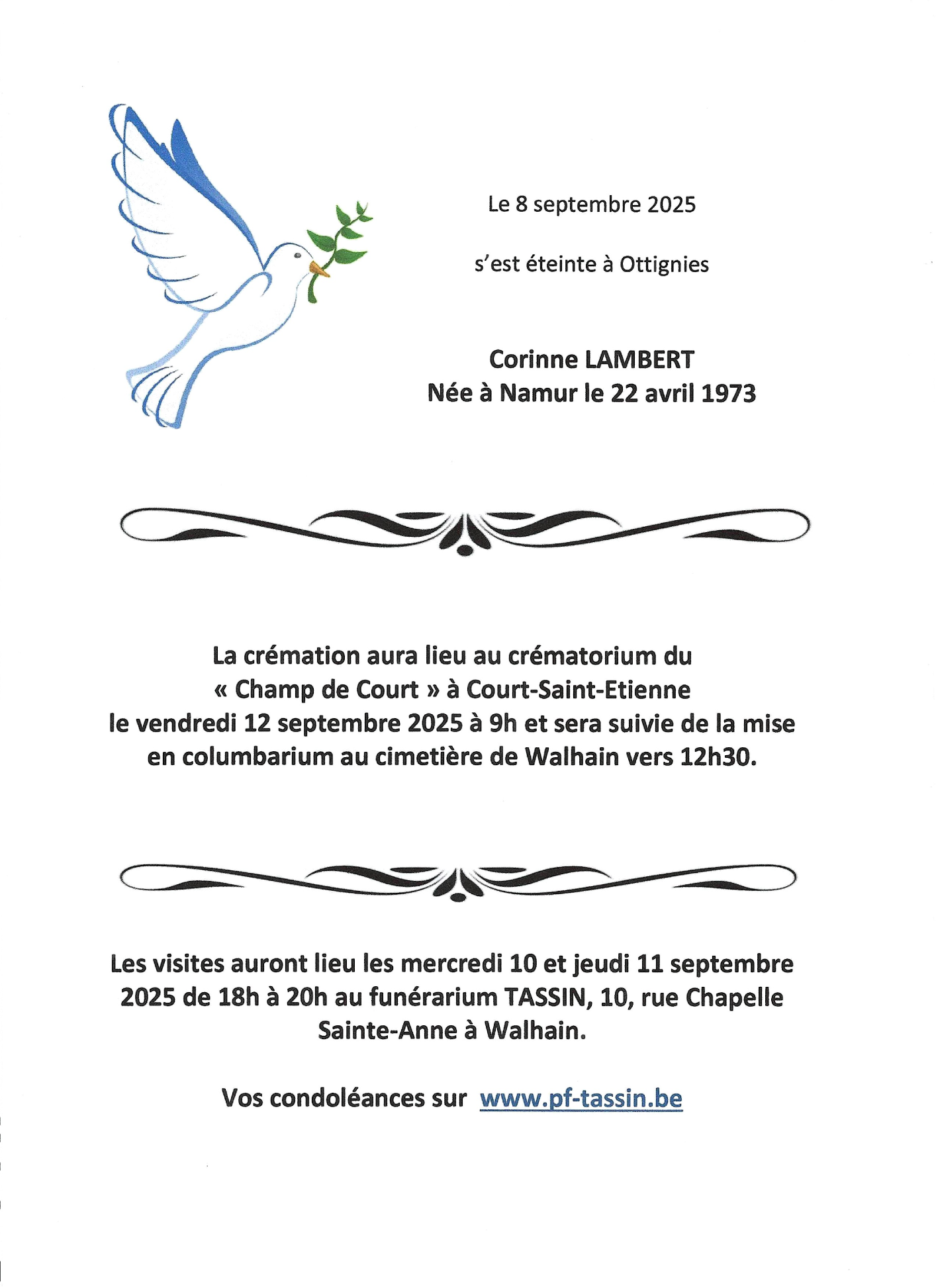 Fallecida en Ottignies (1340) el lunes, 8 de septiembre de 2025 a la edad de 52 años