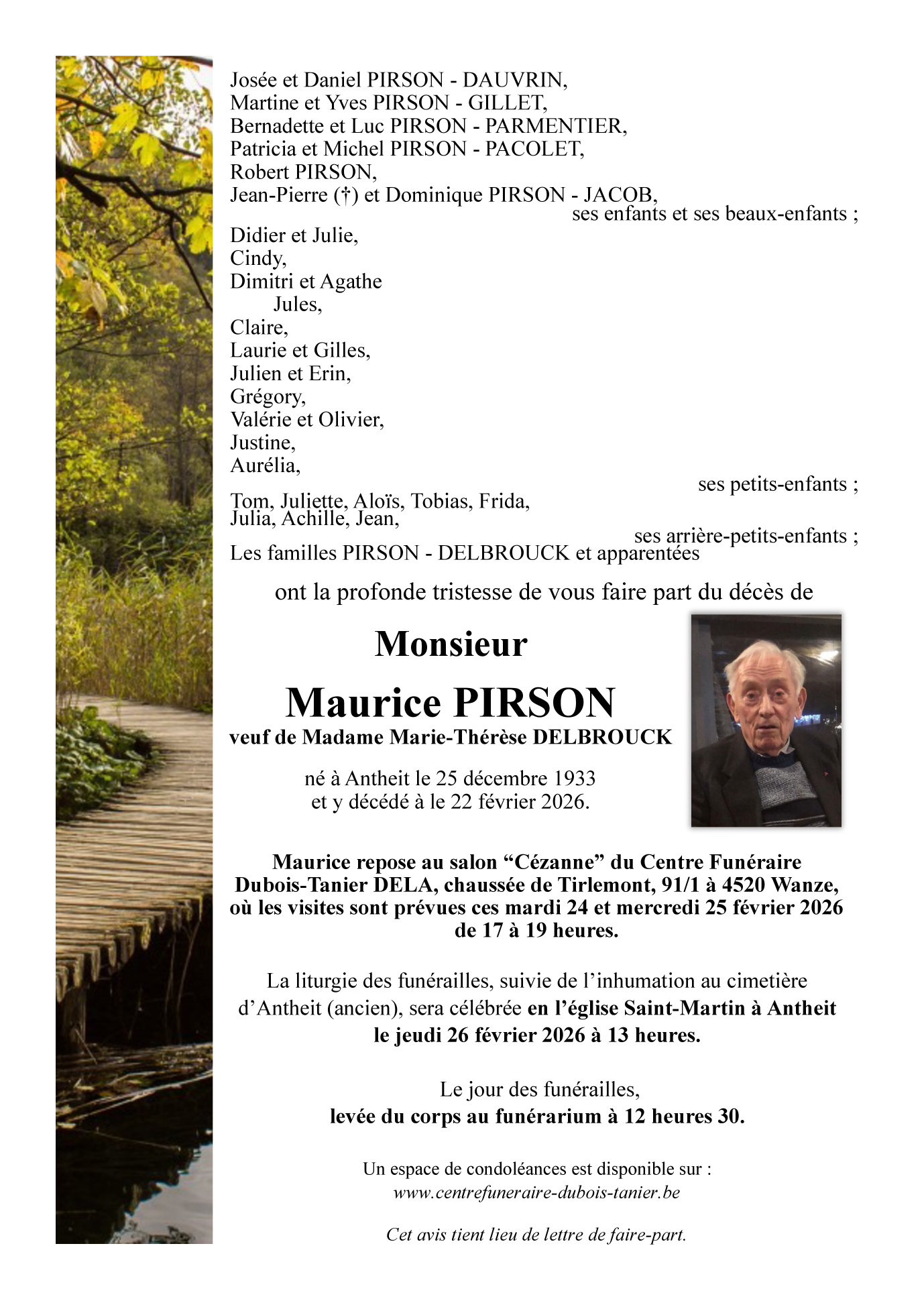 Décédé à Antheit (4520) le dimanche 22 février 2026 à l'âge de 92 ans