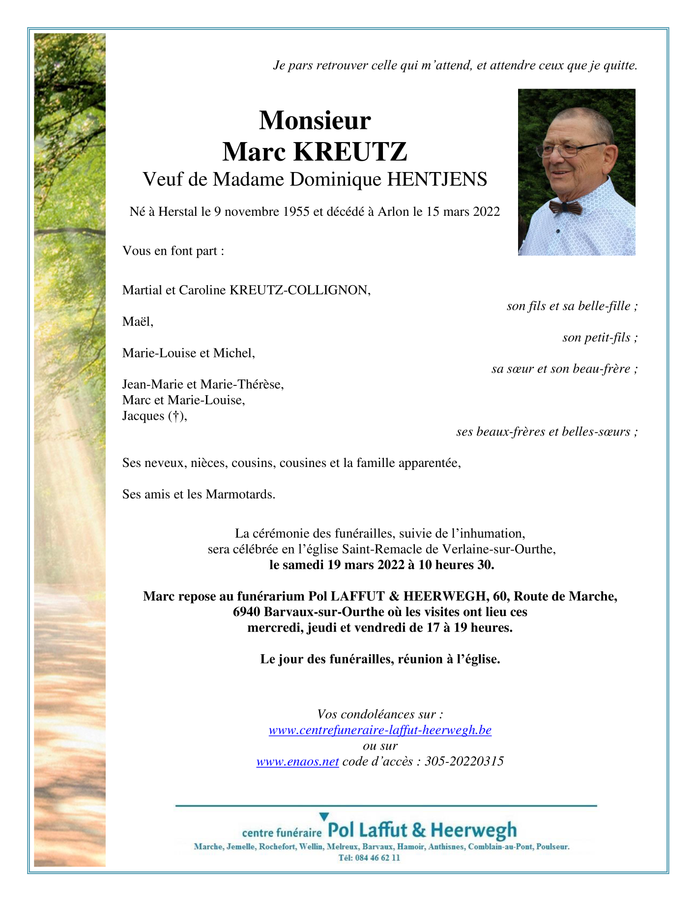 Fallecido en Arlon (6700) el martes, 15 de marzo de 2022 a la edad de 66 años