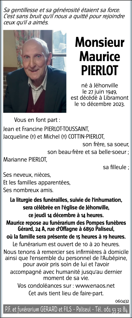 Décédé à Libramont (6800) le lundi 11 décembre 2023 à l'âge de 74 ans
