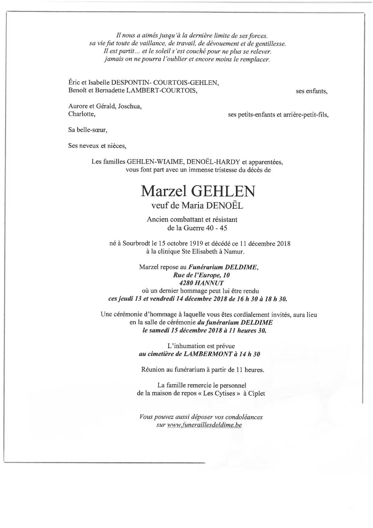 Died in Namur (5000) on 11 December 2018 at the age of 99 years