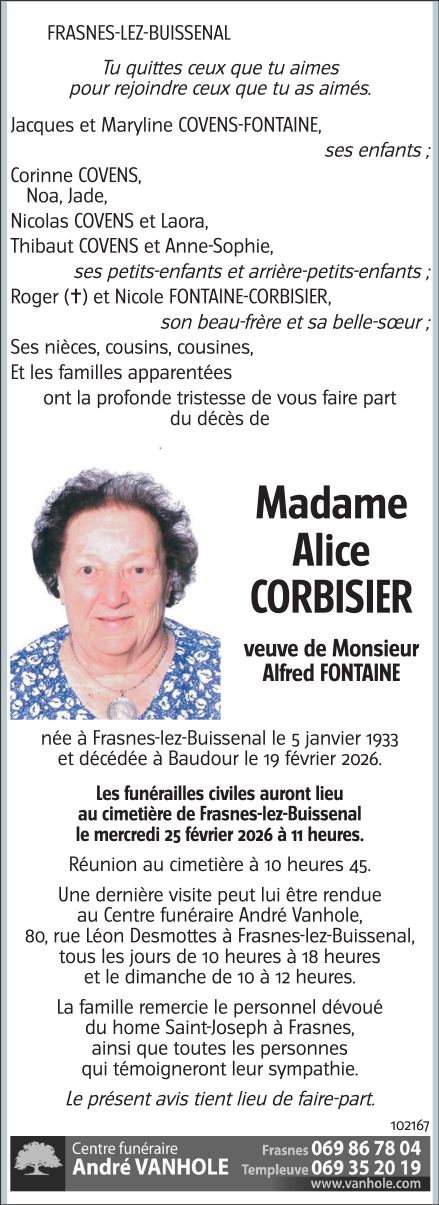 Madame Alice CORBISIER