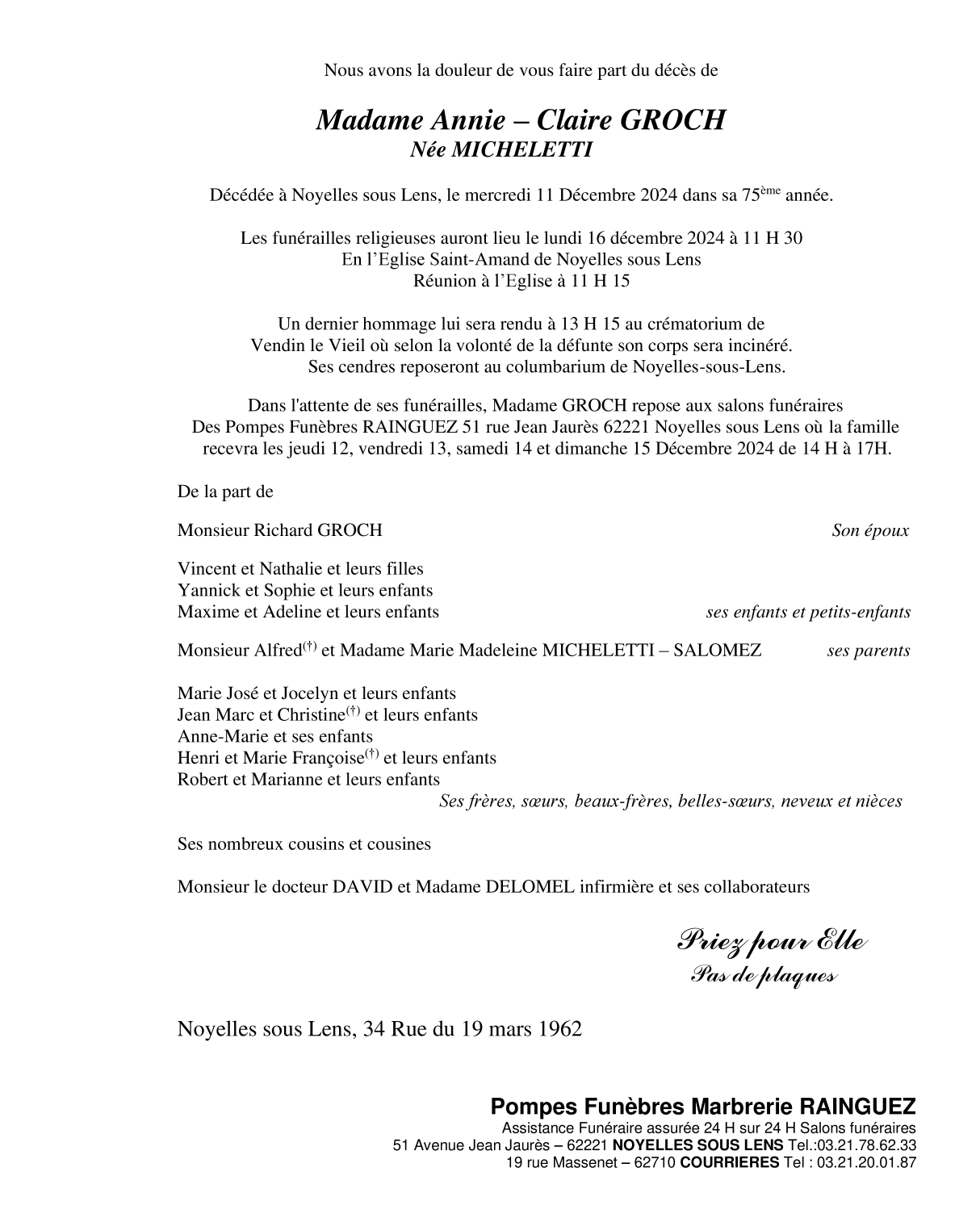 Madame Annie GROCH née MICHELETTI
