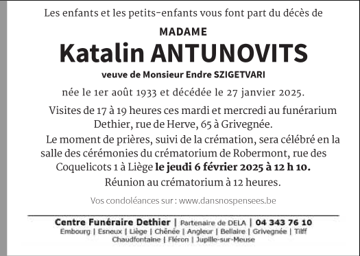 Died in Beaufays (4052) on 27 January 2025 at the age of 91 years
