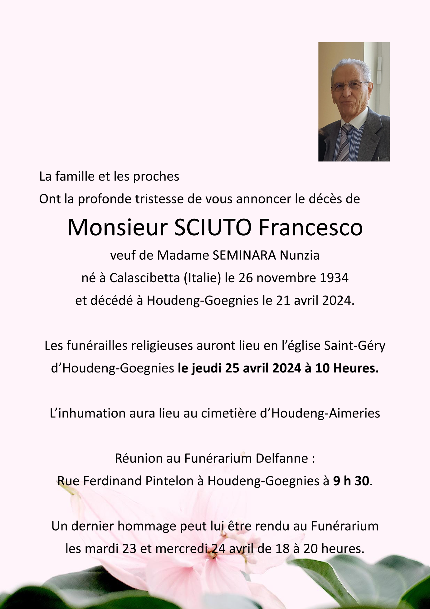 Overleden te Houdeng-Goegnies (7110) op zondag 21 april 2024 op 89-jarige leeftijd
