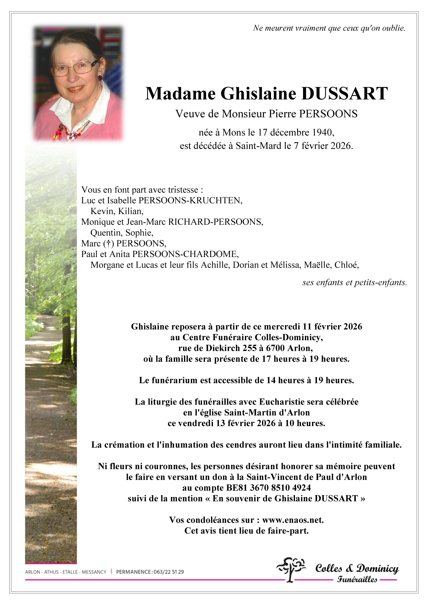 Veuve de Monsieur PERSOONS Pierre