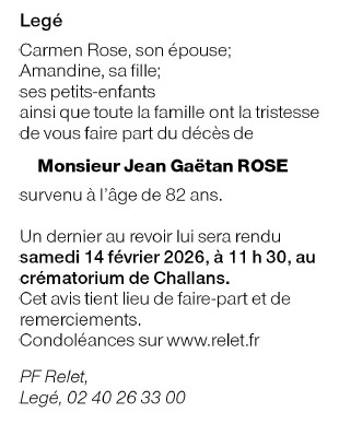 Décédé à Legé (44650, France) le dimanche 8 février 2026 à l'âge de 82 ans