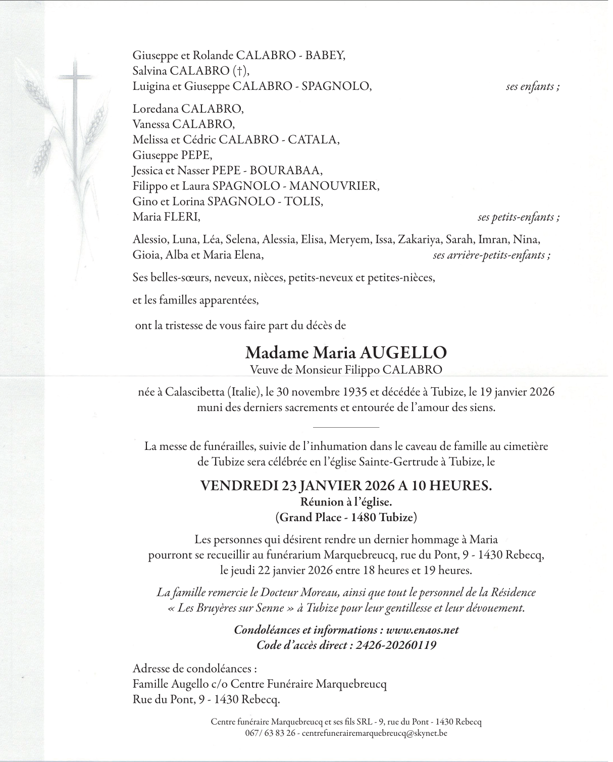 Veuve de Monsieur Filippo CALABRO