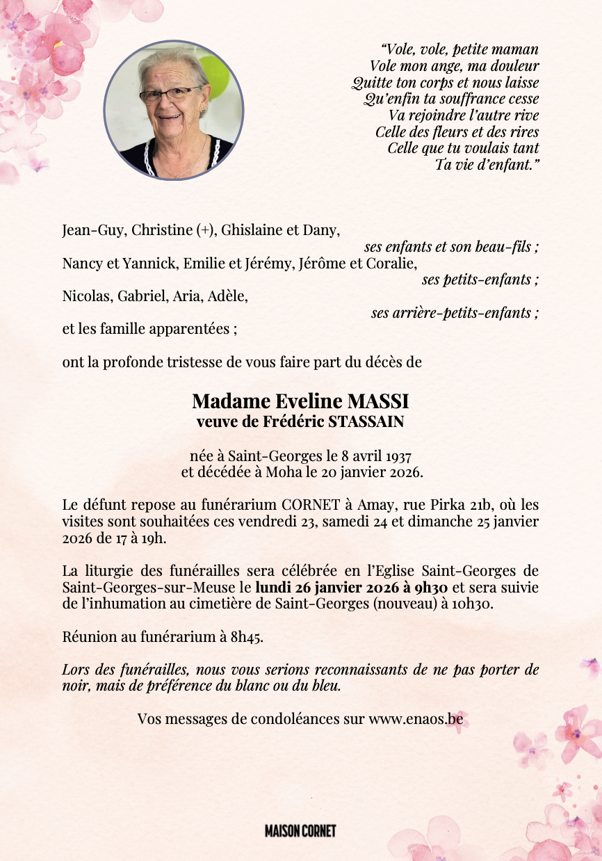 Née à Saint-Georges-sur-Meuse (4470) le jeudi 8 avril 1937