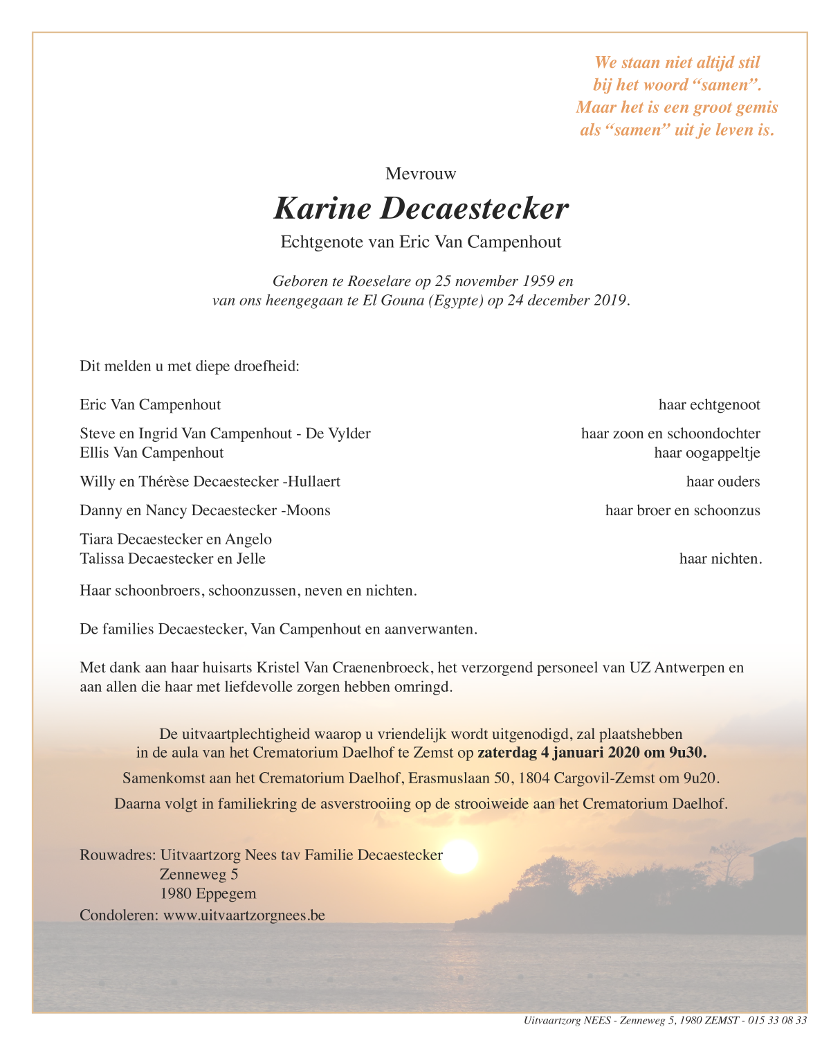 Décédée à « Localité inconnue » le mardi 24 décembre 2019 à l'âge de 60 ans