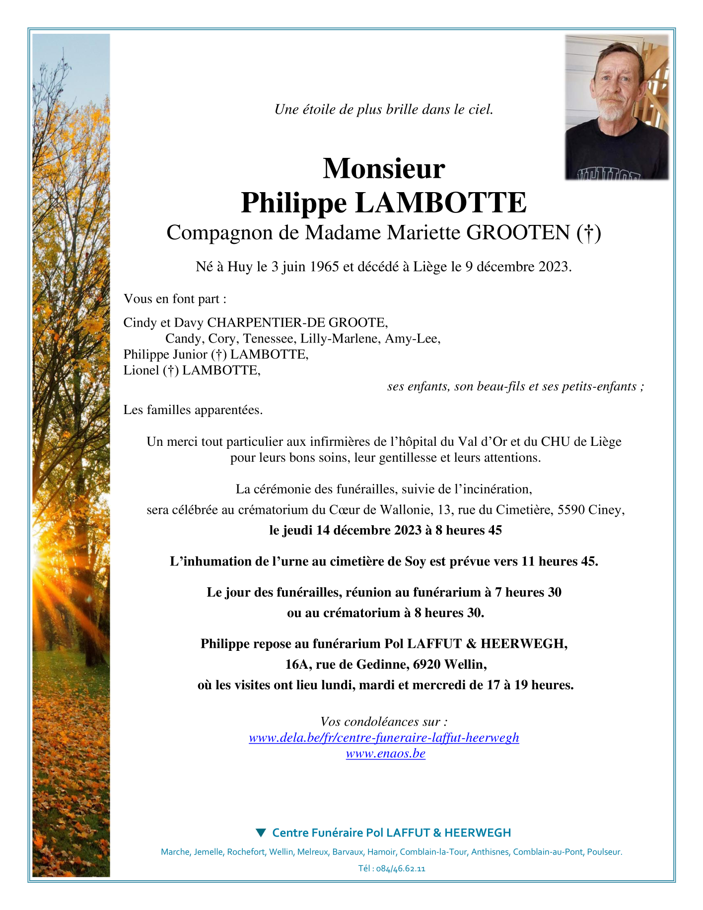 Décédé à Liège (4000) le samedi 9 décembre 2023 à l'âge de 58 ans
