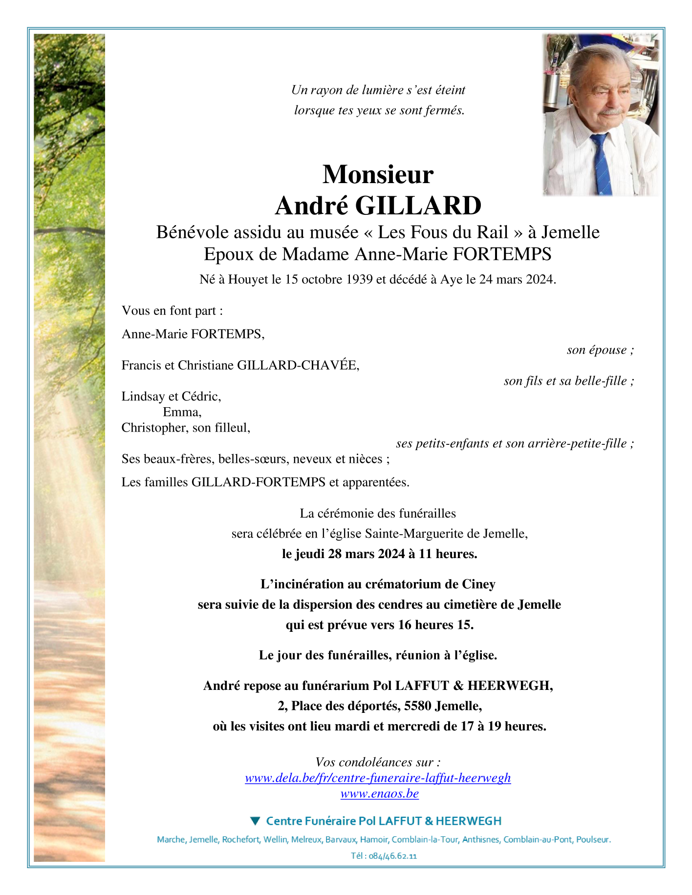 Fallecido en Aye (6900) el domingo, 24 de marzo de 2024 a la edad de 84 años