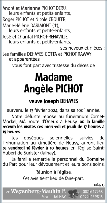 Décédée à Verviers (4800) le mardi 13 février 2024 à l'âge de 99 ans