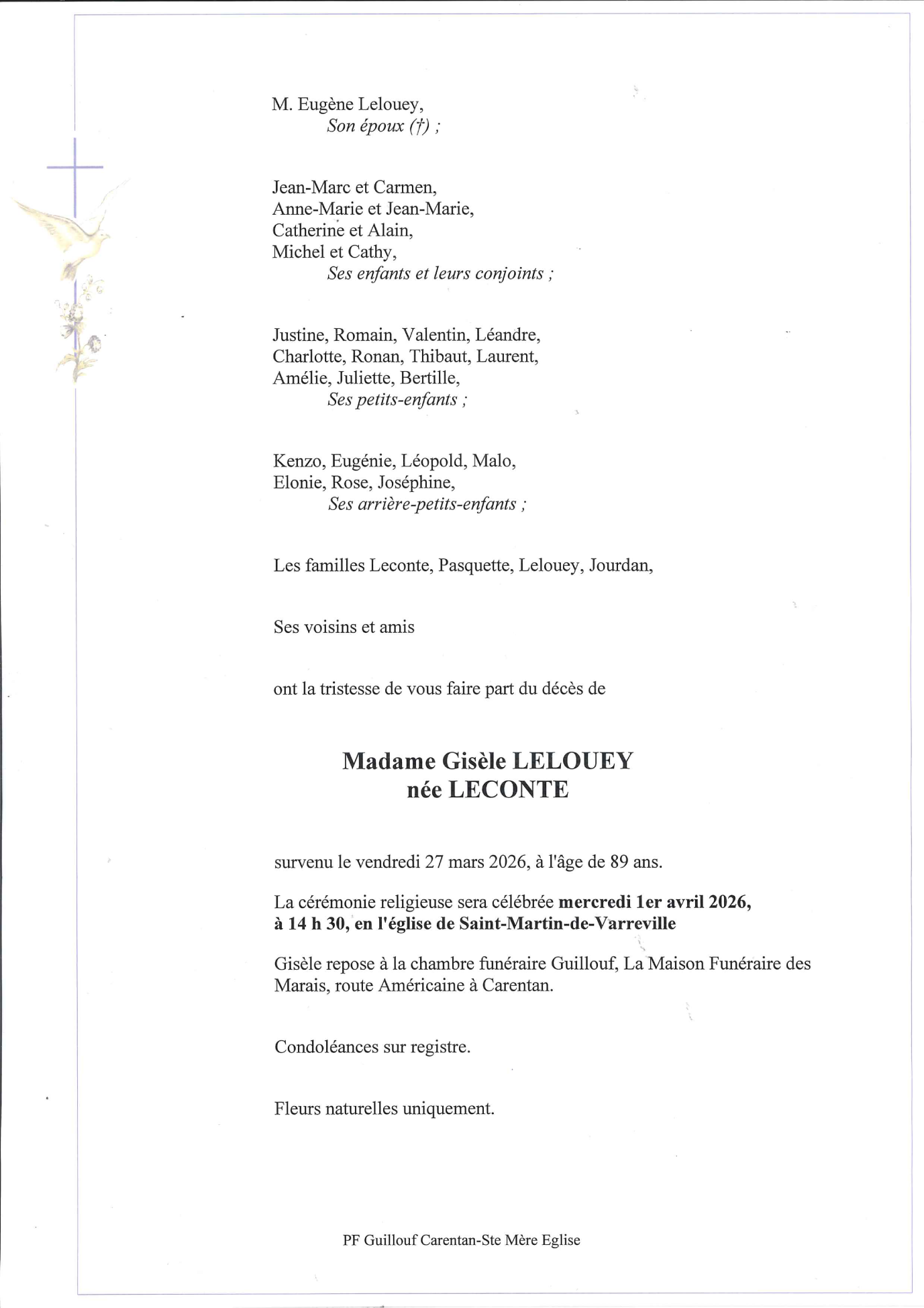 Madame Gisèle LELOUEY née LECONTE