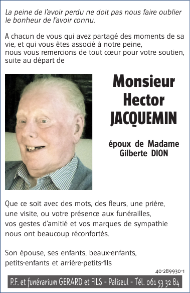 Fallecido en Bouillon (6830) el lunes, 19 de febrero de 2018 a la edad de 85 años