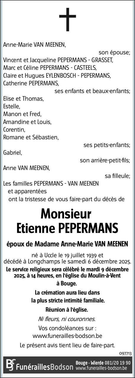 Died in Longchamps (Nam.) (5310) on 06 December 2025 at the age of 86 years