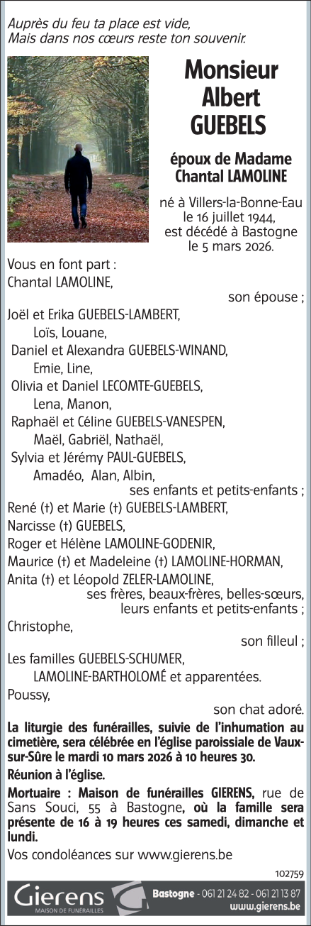 Fallecido en Bastogne (6600) el jueves, 5 de marzo de 2026 a la edad de 81 años