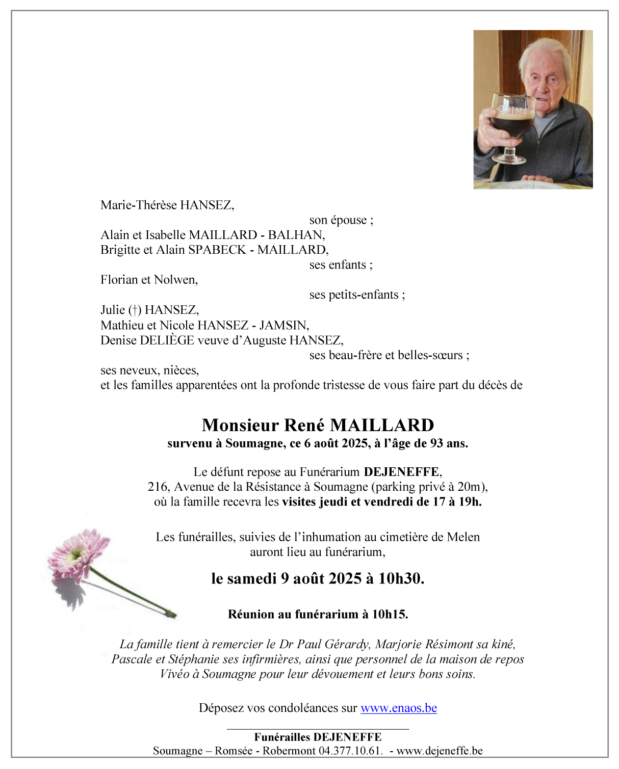 Fallecido en Soumagne (4630) el miércoles, 6 de agosto de 2025 a la edad de 93 años