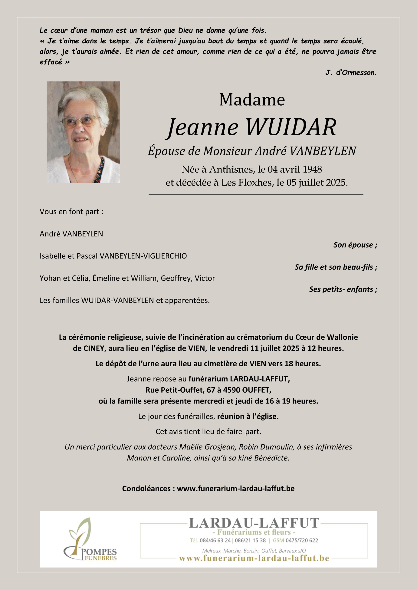 Died in Les Floxhes (4160) on 05 July 2025 at the age of 77 years
