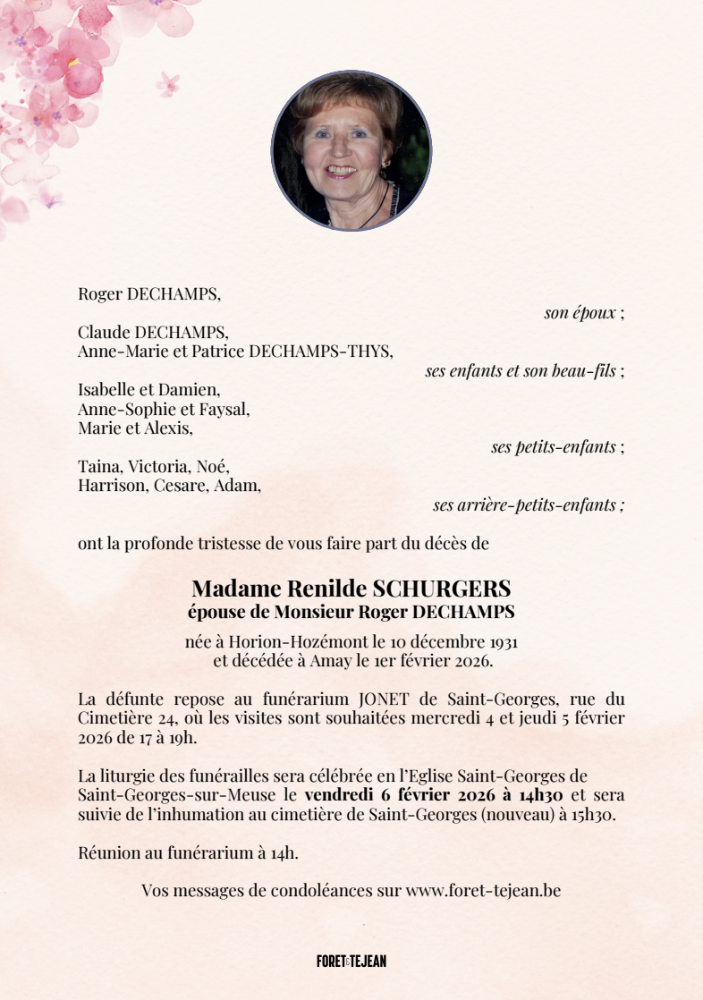 Décédée à Amay (4540) le dimanche 1 février 2026 à l'âge de 94 ans