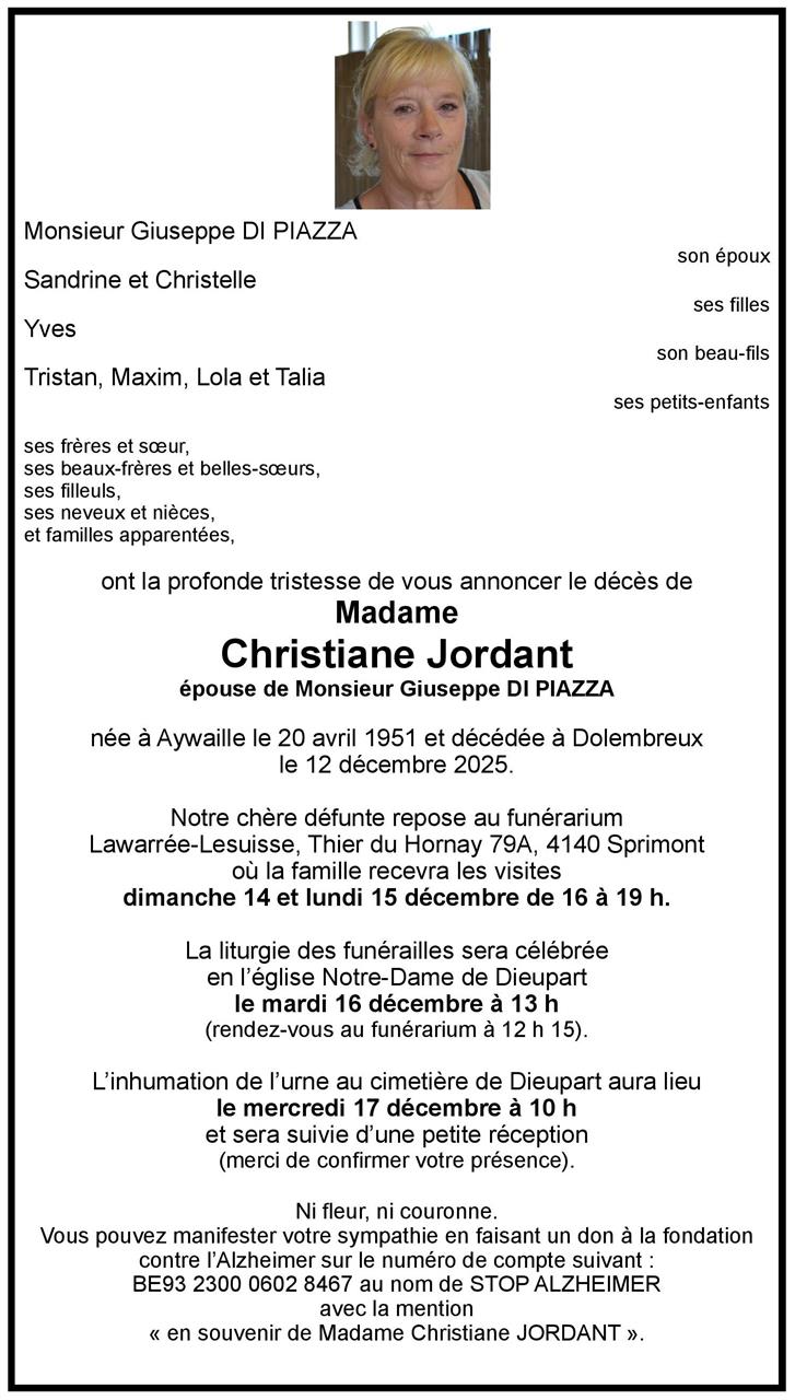 Overleden te Sprimont (4140) op vrijdag 12 december 2025 op 74-jarige leeftijd