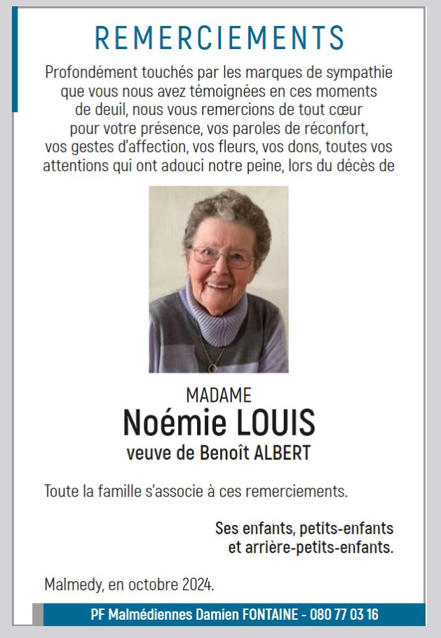 Madame Noémie LOUIS veuve de Benoît ALBERT