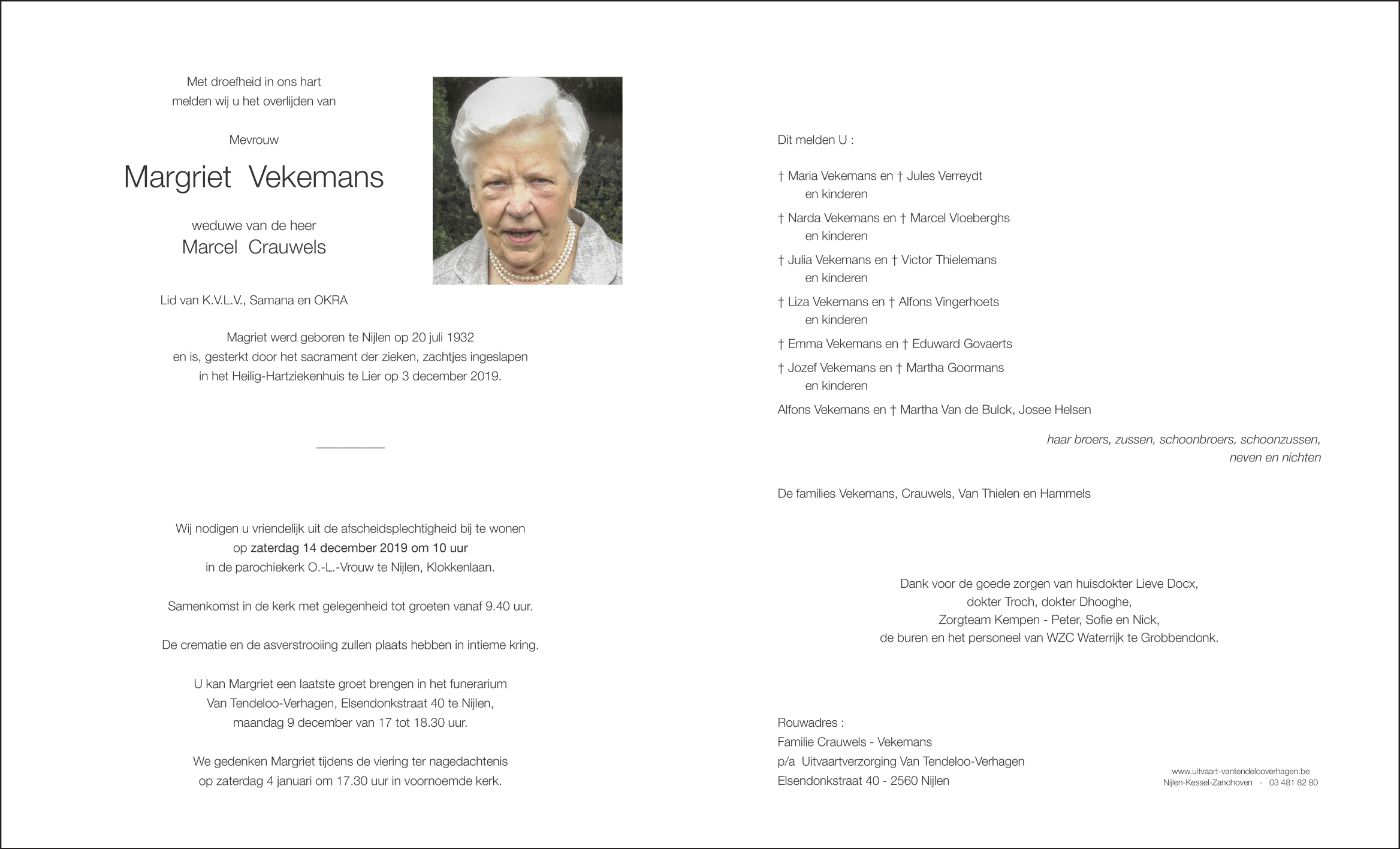 Décédée à Lier (2500) le mardi 3 décembre 2019 à l'âge de 87 ans