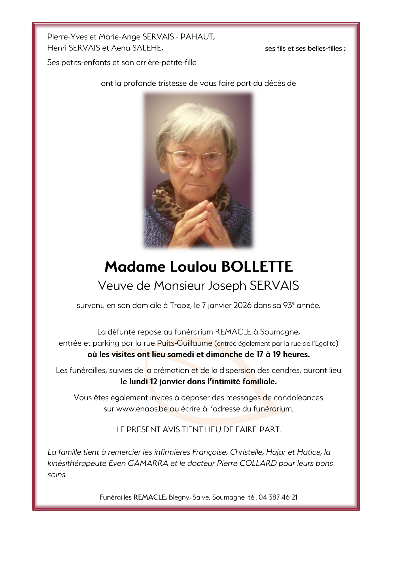 Décédée à Trooz (4870) le mercredi 7 janvier 2026 à l'âge de 92 ans